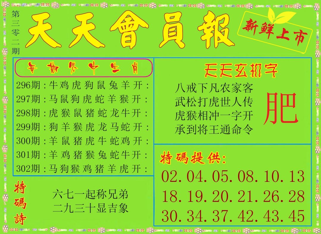| 301期 | 兔羊马 | 虎鼠 | 猴 |